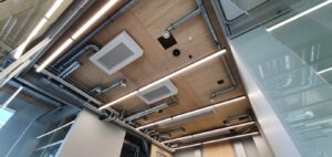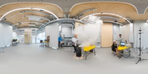 Ventilation air distribution laboratory  | Air distribution laboratory of 45 m2 and 3.7 m height has its own air handling unit. It allows to measure airflow patterns from supply and room conditioning units, air jets, throw lengths and tracer gas spread. It has been used for ventilation effectiveness and airborne virus transmission research.  |